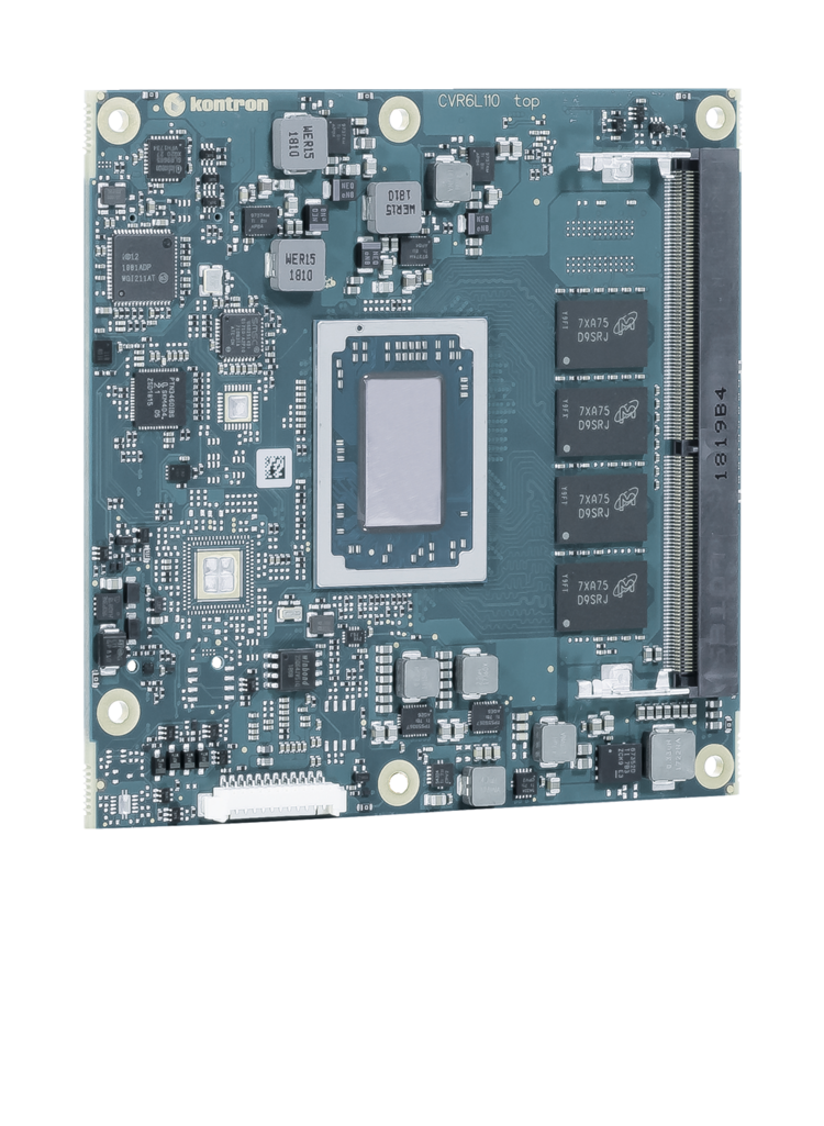 Besides the high-performance graphics on a SOC level, the COMe-cVR6 offers the option to additionally or alternatively use soldered memory. As a result, the module supports a total of up to 48 GB RAM or provides more thermal and mechanical resistance with up to 16 GB memory down.